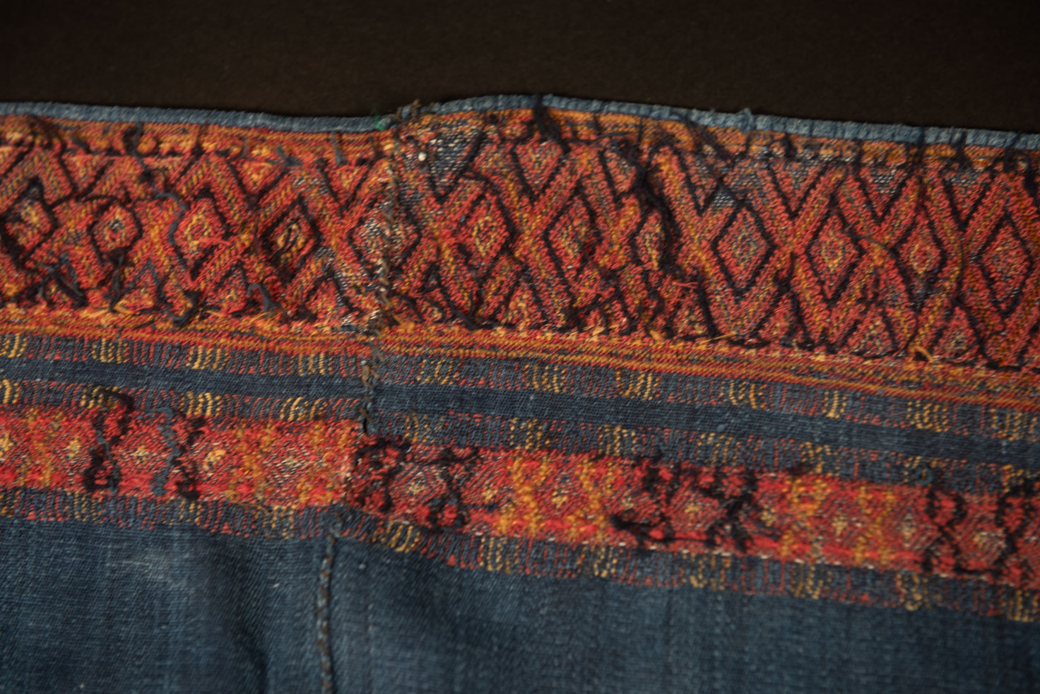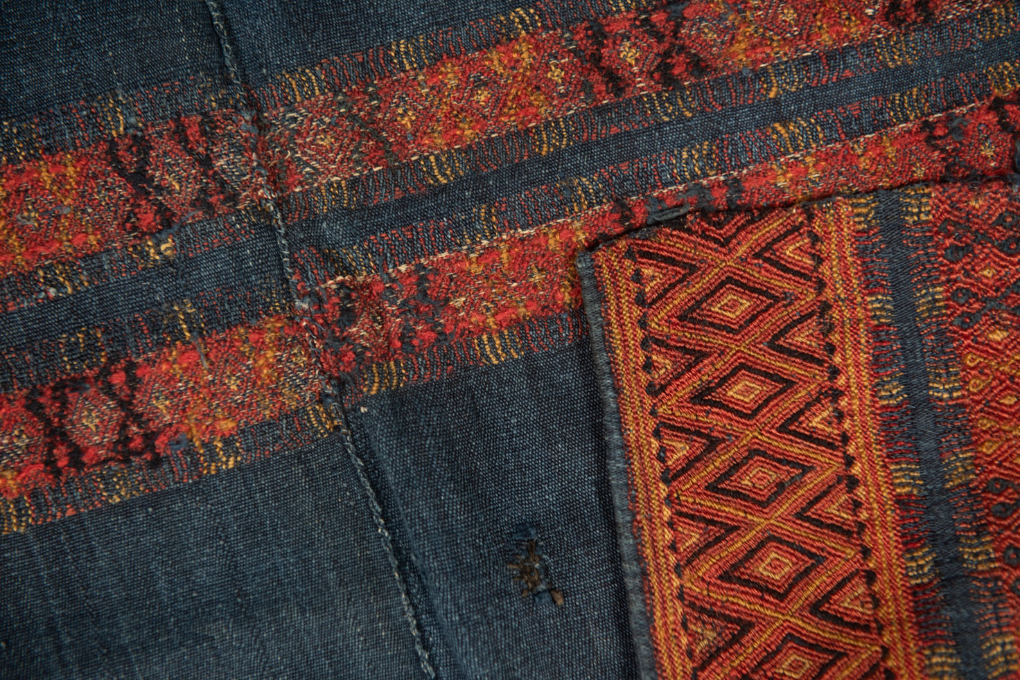這些喪服傳統上以苧麻為主要原料編織,作為基礎與經線,並常以天然靛藍染色。緯線可能也由苧麻製成,或使用天然羊毛與壓克力等其他材料,在提花技巧中經常運用。使用錦織技術製作的圖案極為精緻美觀,呈現出刺繡般的效果,因此也被稱為「鑲嵌織法」。以此技法呈現的人臉或人形圖案非常常見。