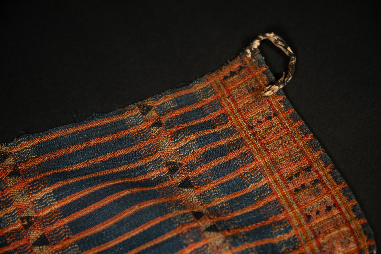 在排灣族中,喪服是最具代表性的織品之一,也在文化中佔有極為重要的地位。由於排灣族對死亡與哀悼的觀念極為嚴肅,這類服飾在其儀式中扮演著核心角色。其中一項顯著的服飾為女性所戴的三角形或四角形帽子。穿戴者會先以頭巾包覆頭髮,然後再將喪布覆蓋其上,並使用兩條繫帶在頭後綁緊,使布料自然垂落於兩側. 喪用披肩則穿戴於日常服裝之上,披於雙肩,並以兩條繩帶緊束於胸前。