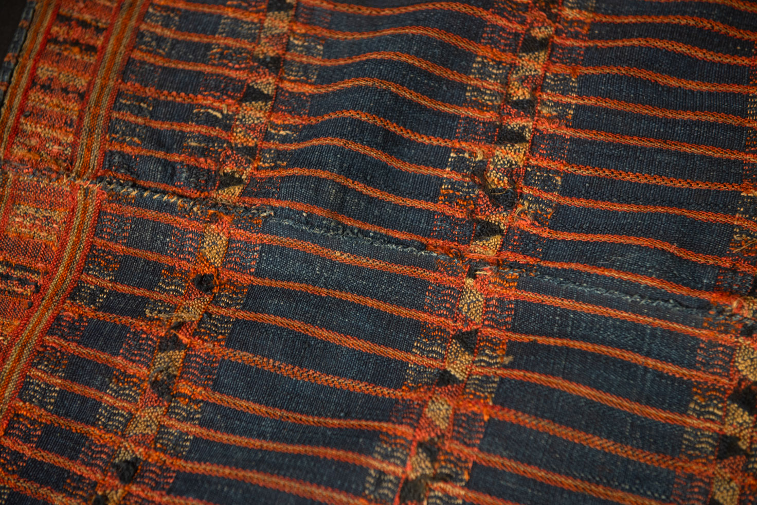 這些喪服傳統上以苧麻為主要原料編織,作為基礎與經線,並常以天然靛藍染色。緯線可能也由苧麻製成,或使用天然羊毛與壓克力等其他材料,在提花技巧中經常運用。使用錦織技術製作的圖案極為精緻美觀,呈現出刺繡般的效果,因此也被稱為「鑲嵌織法」。以此技法呈現的人臉或人形圖案非常常見。