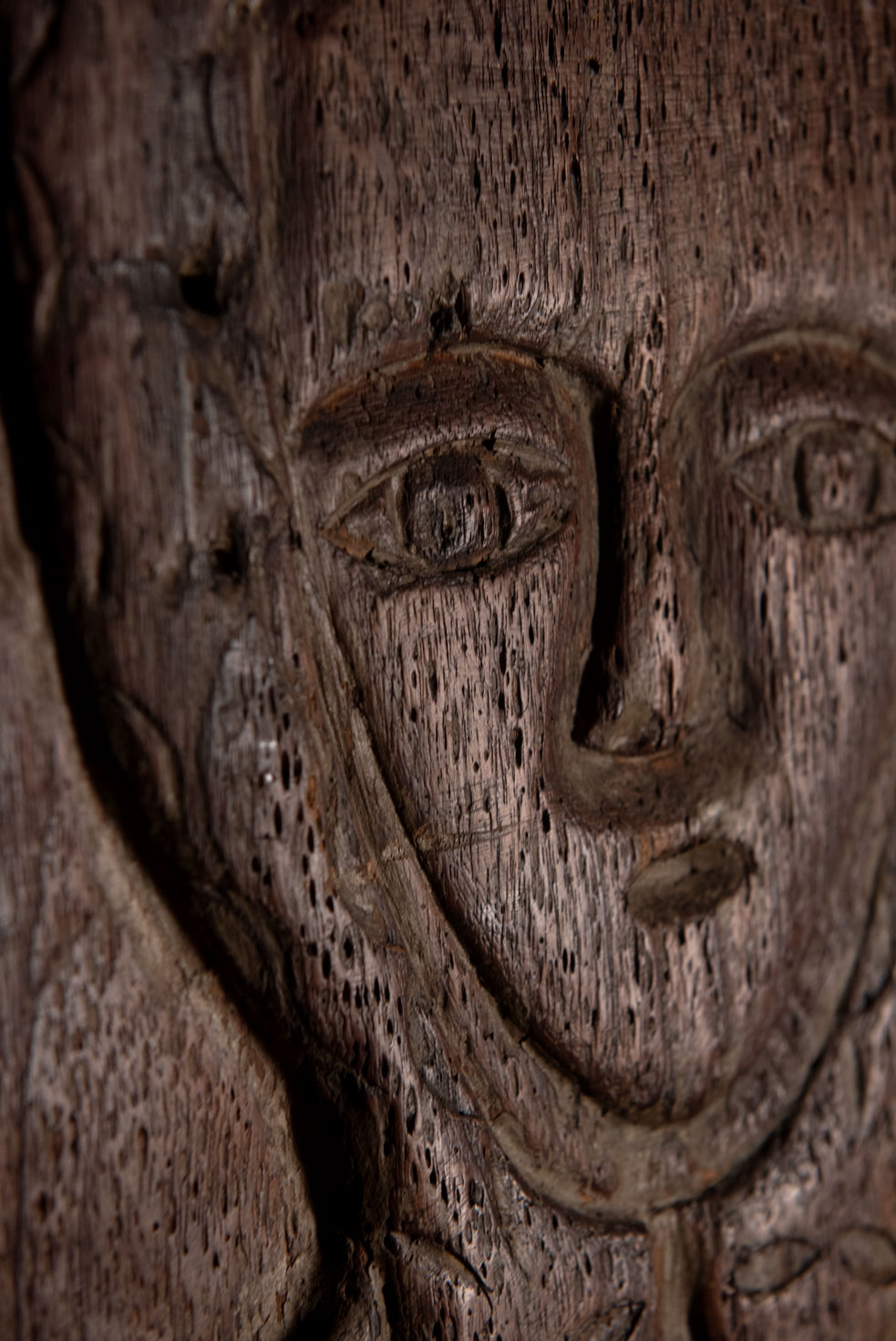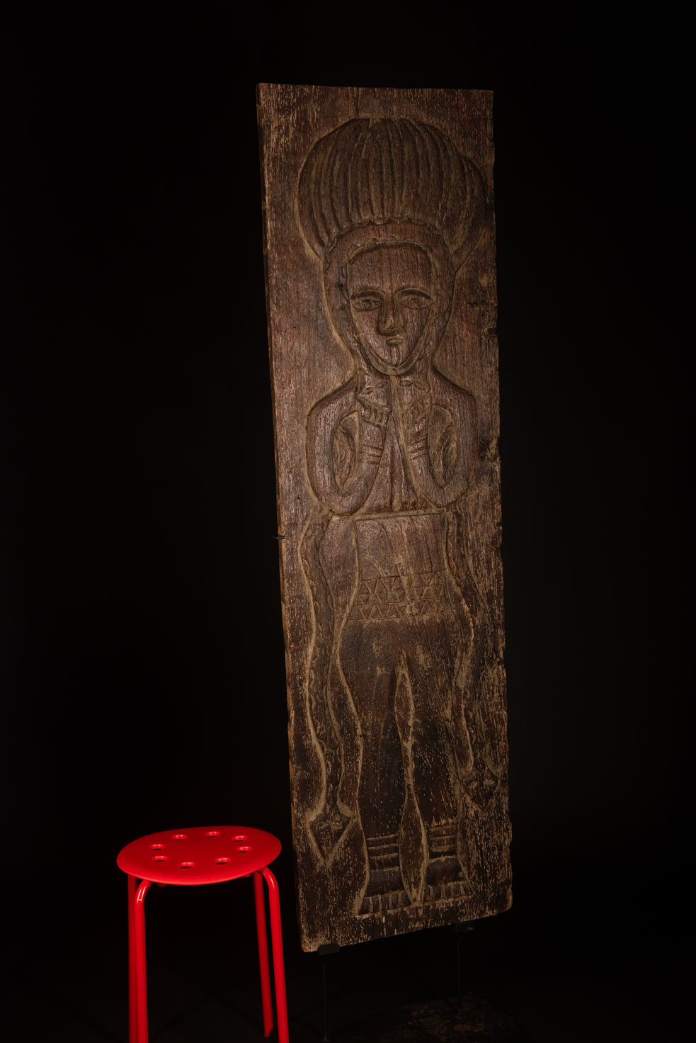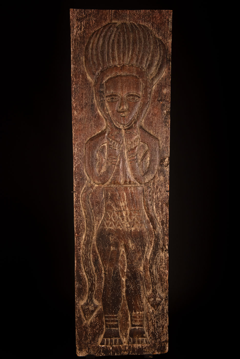 此面板以非常堅硬的木材雕刻而成,描繪了一位性別不明的貴族祖靈。雙臂交叉於胸前,雙手放在環繞臉部的蛇的兩個頭上。他頭戴飾有老鷹羽毛的帽子,象徵著戰鬥英勇與體力旺盛。另有兩條蛇纏繞其身體。