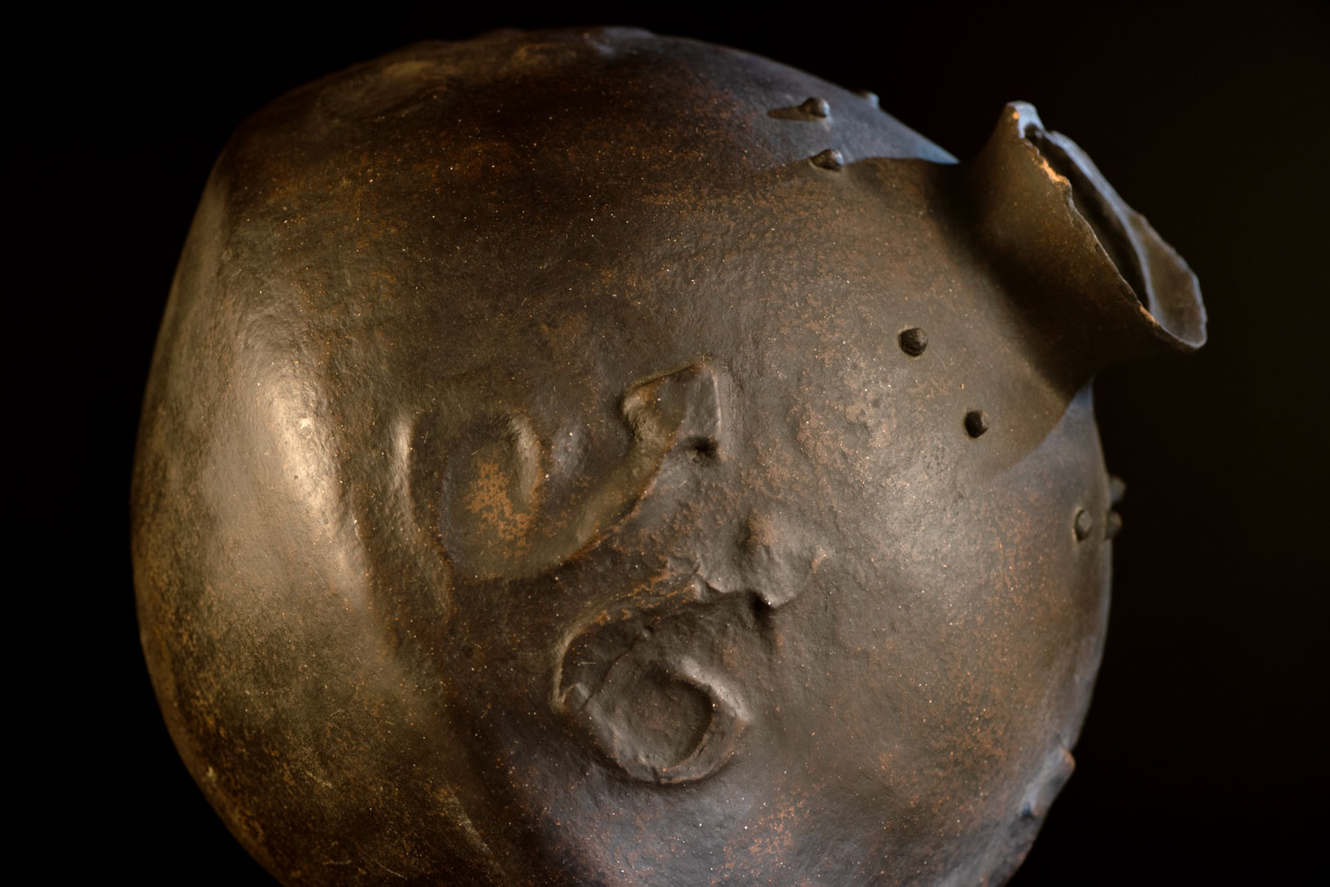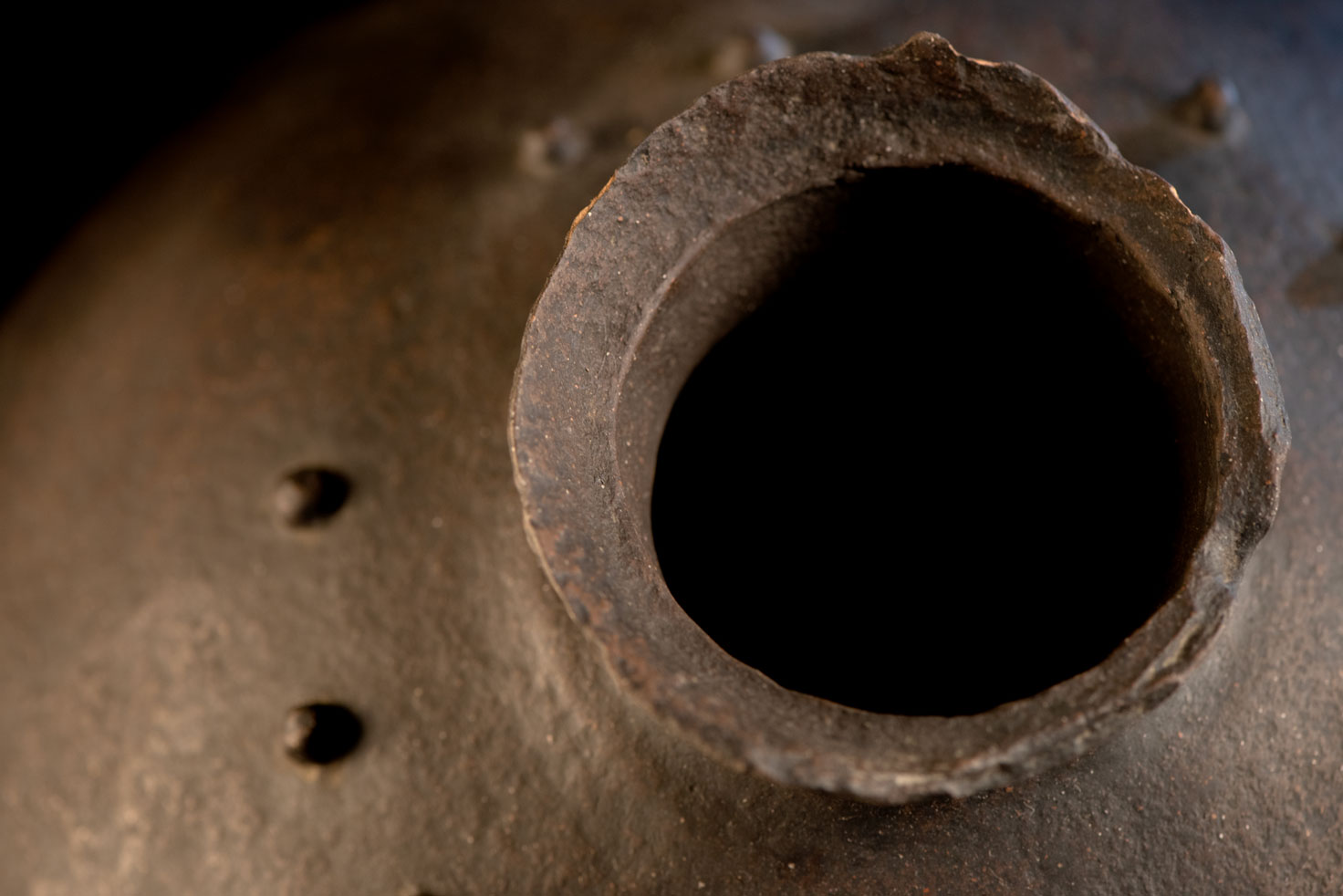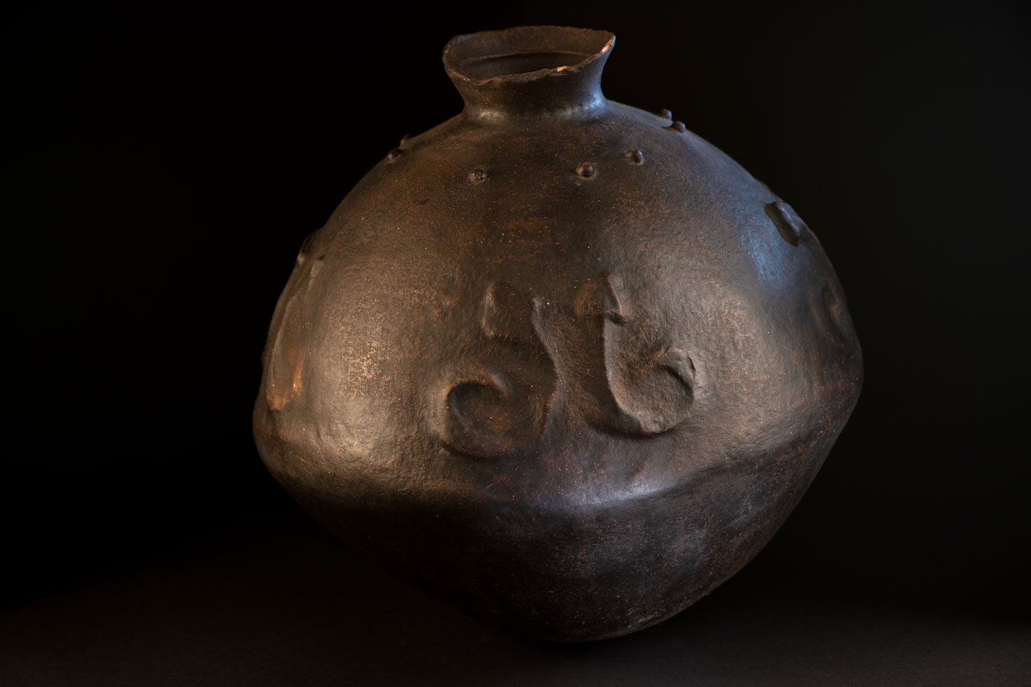 這件來自排灣族的神聖陶壺屬於雙性類型,結合了蛇紋與乳突紋裝飾。 壺口周圍缺少一些碎片。根據傳統,當兒子或女兒結婚時,父母會從壺口折下一小塊陶片。這個行為象徵對氏族關係的確認,對於女兒而言,這也是她嫁妝的一部分。