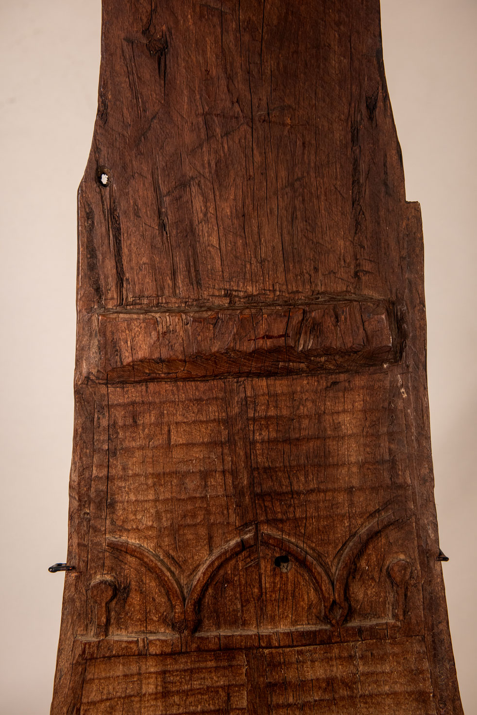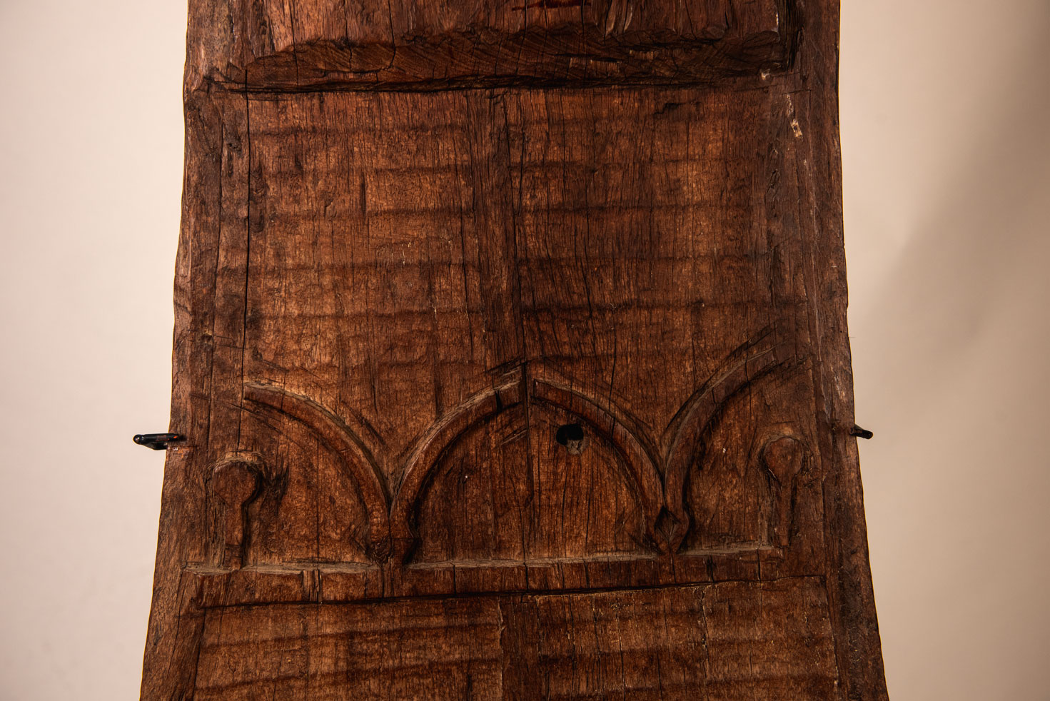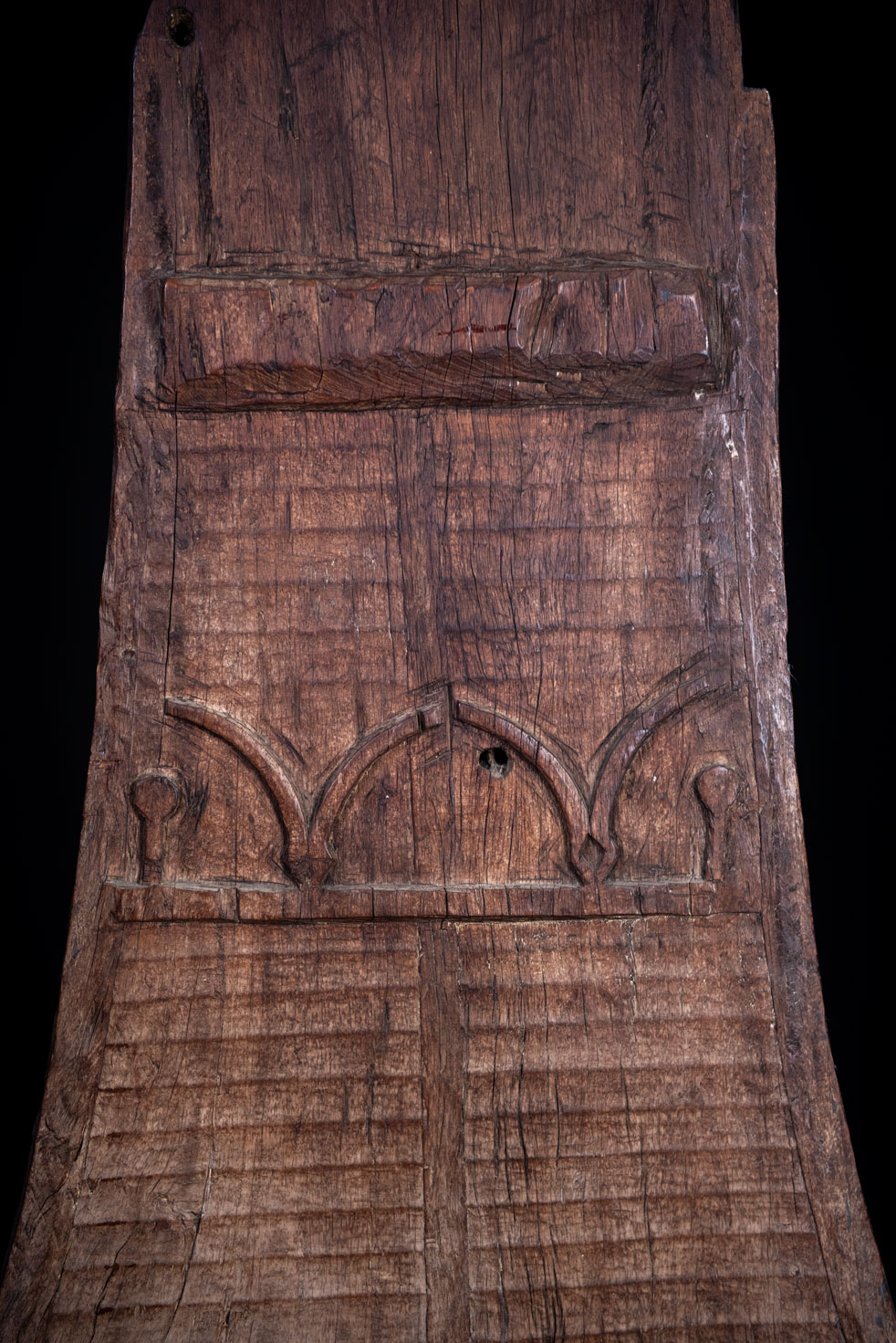在蘭嶼的雅美族(達悟族)傳統建築中,tomok 是家屋的精神核心。這根中央立柱以木材雕成三角形,下寬上窄,豎立於後室的屋脊樑下。由於具有象徵意義,它也被稱為「祖靈柱」。在雅美語中,此柱名為 tomok。一般以山竹木製作,其頂端常雕有V字形紋飾,形似山羊角,象徵長壽與繁榮。雖然許多舊例已不見此裝飾,但柱身表面往往仍可見淺刻的橫向波紋。