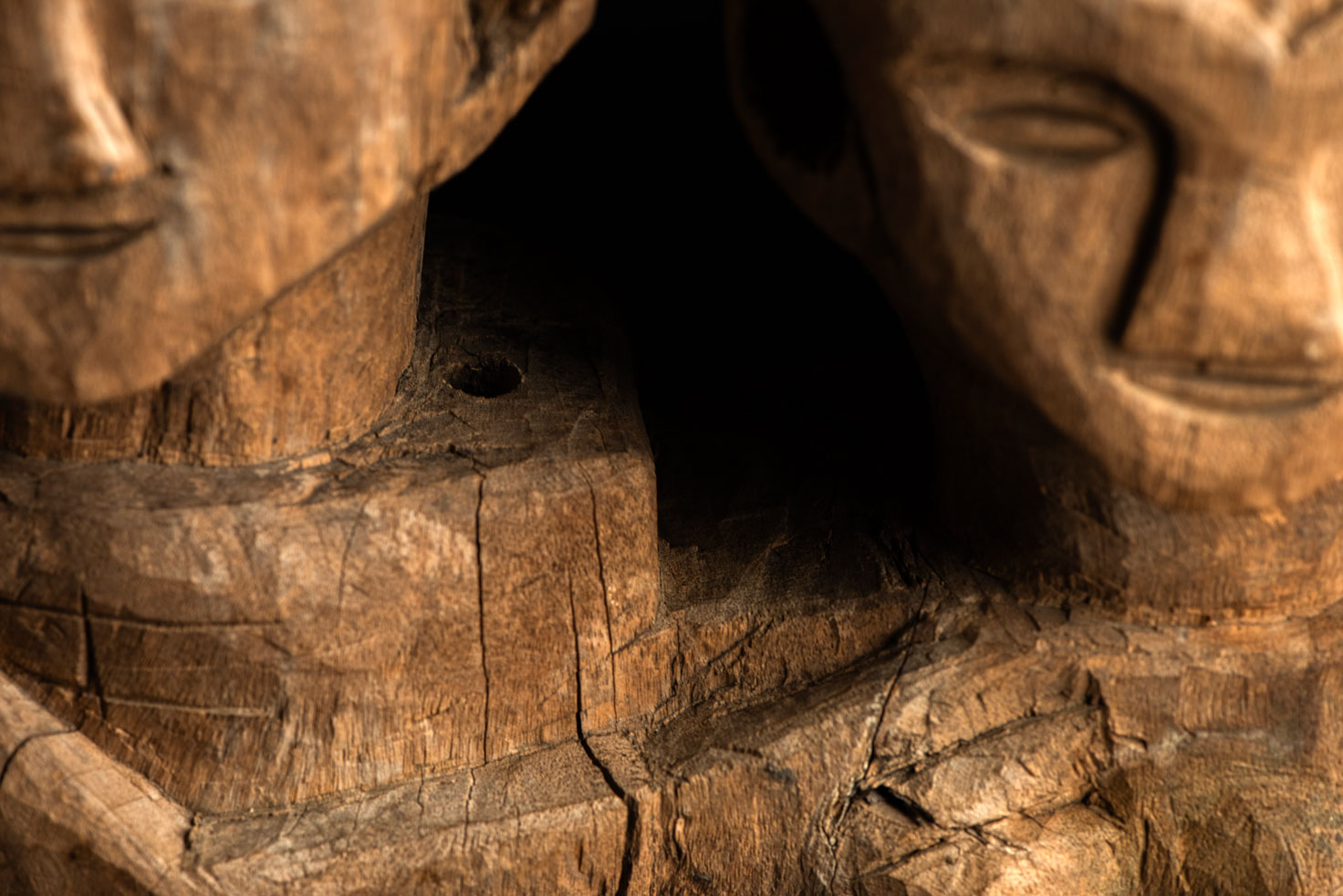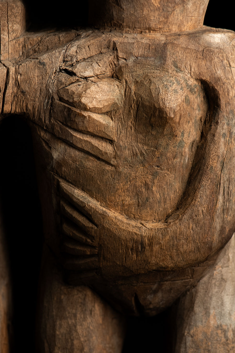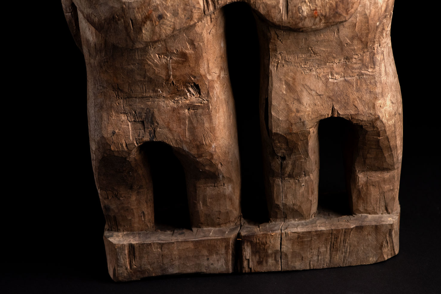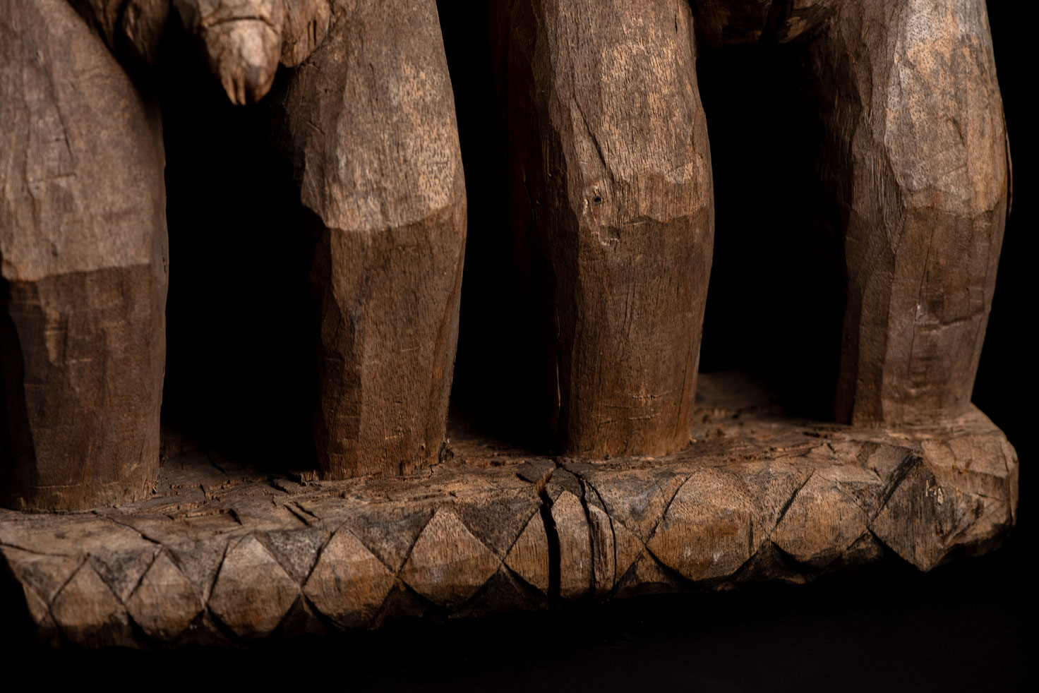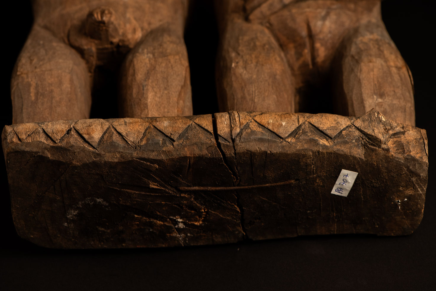 這尊祖靈雕像描繪一對夫妻。男子略高於妻子,右手放在她的胸前,左手則輕搭在她的肩上。女子一手放在腹部,象徵生育,另一手則搭在丈夫的肩膀上。兩人皆為裸體呈現。雙手的姿勢充滿象徵意涵,令人讚嘆。 夫妻腳下刻有神聖百步蛇的圖騰紋飾,象徵他們的貴族身分。雕像底部可見黑色顏料的殘留痕跡。 雕刻工藝精湛,象徵細膩,顯示此作品出自一位技藝高超的雕刻師之手。