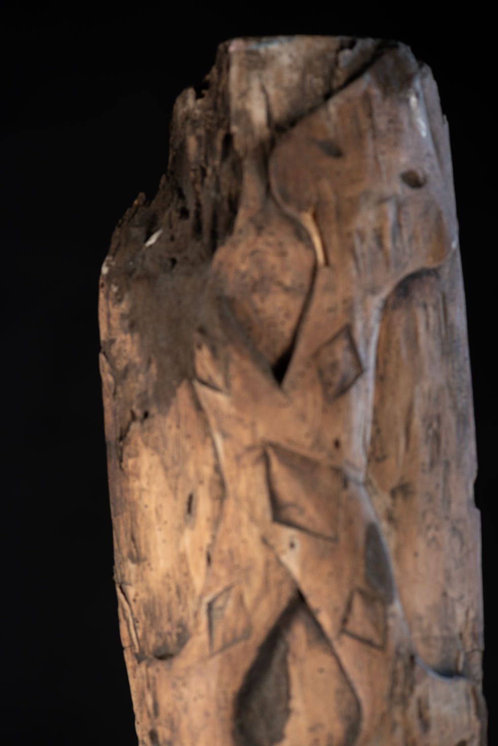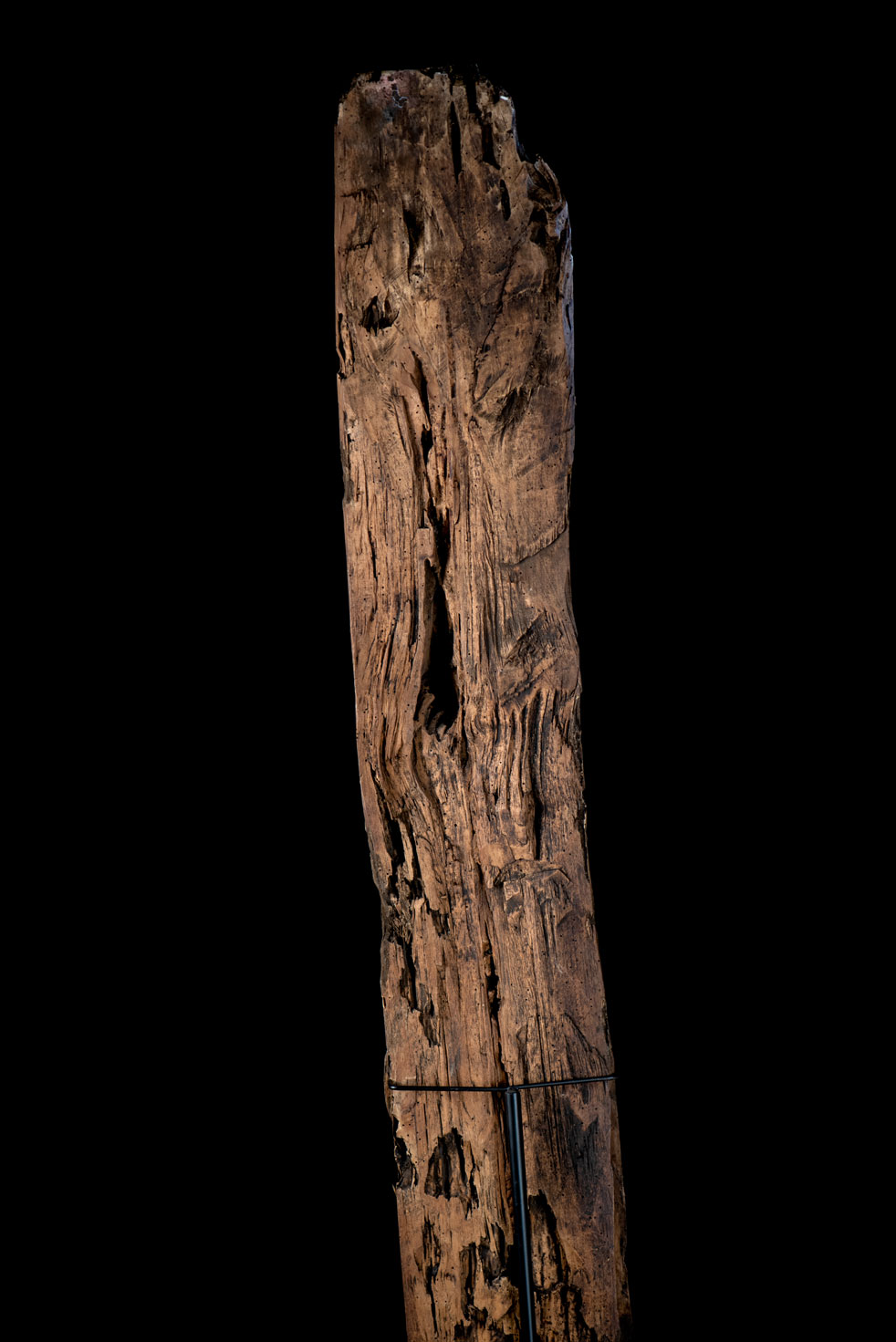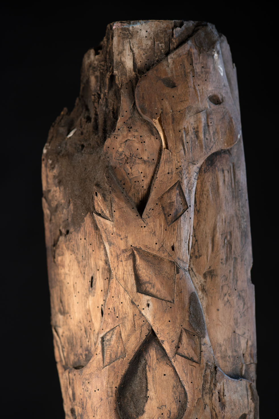 This half-pillar, made of relatively light wood, was part of a partition element inside the house. The object shows signs of crude restoration, likely carried out by a previous owner, as well as woodworm holes.