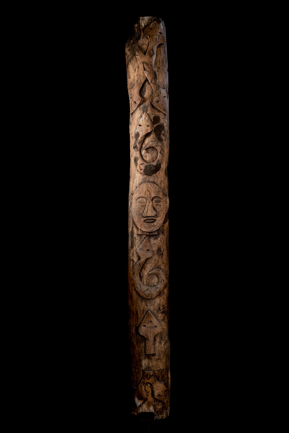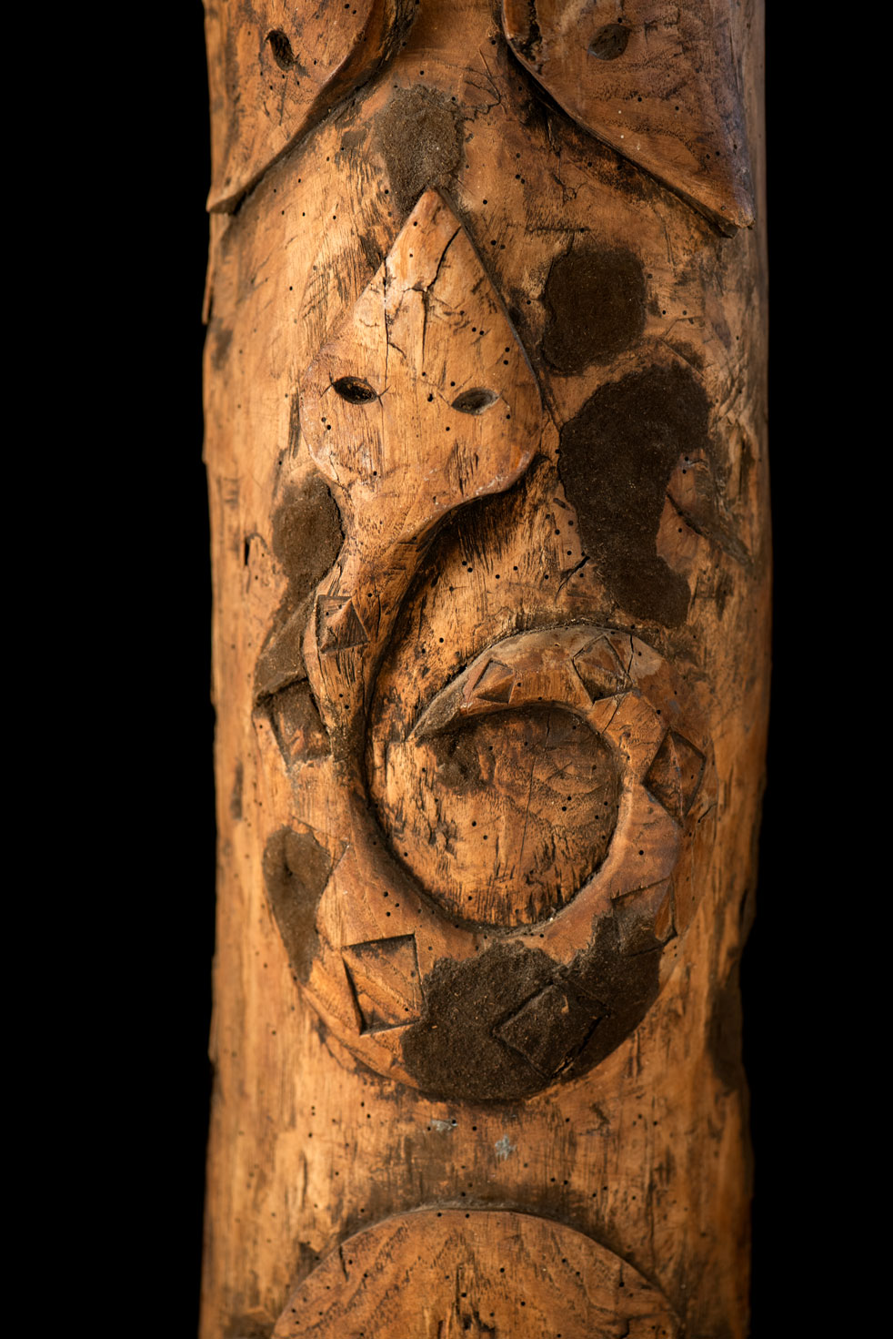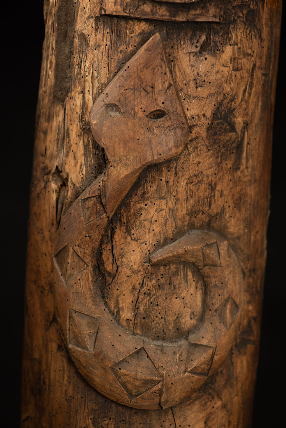 This half-pillar, made of relatively light wood, was part of a partition element inside the house. The object shows signs of crude restoration, likely carried out by a previous owner, as well as woodworm holes.