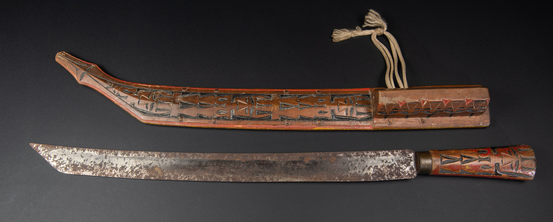 這把劍是從一個排灣族原住民家庭取得的,似乎曾被其前任主人重新上漆。