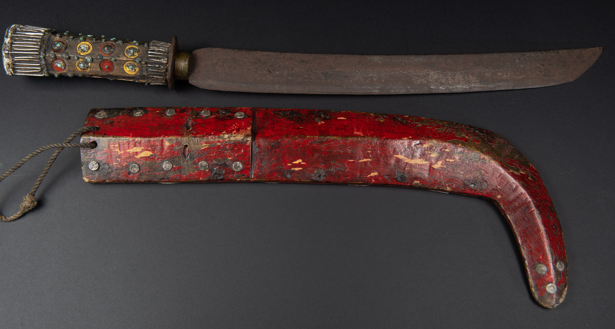 卑南族(又稱為 Beinan)是排灣族群的一個分支,與魯凱族同屬於同一文化家族。卑南族主要分布於台灣東南部的台東地區,並發展出一種獨特風格的彎鞘長劍。 這類風格的劍極為罕見。此件為實用性之作,原用於農耕或狩獵,展現了工藝與功能性的完美結合。