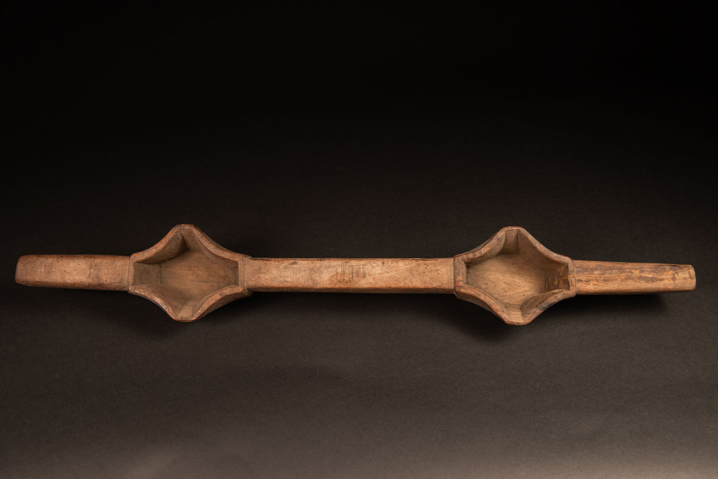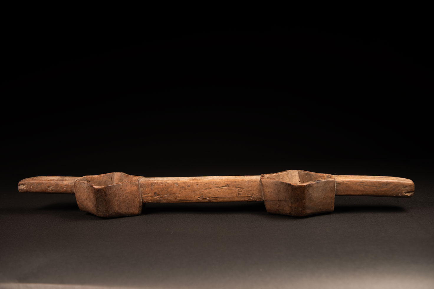 Simple Wooden double cup for wine from Paiwan tribe without any carving or paint. Strangely, the absence of carving and painting gives the object a powerful beauty based solely on its design.